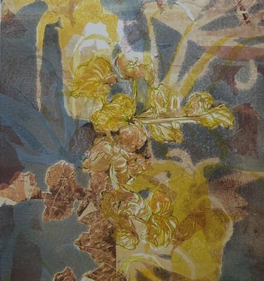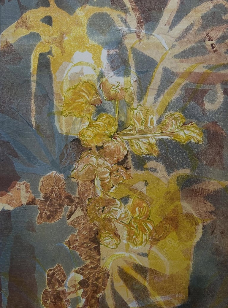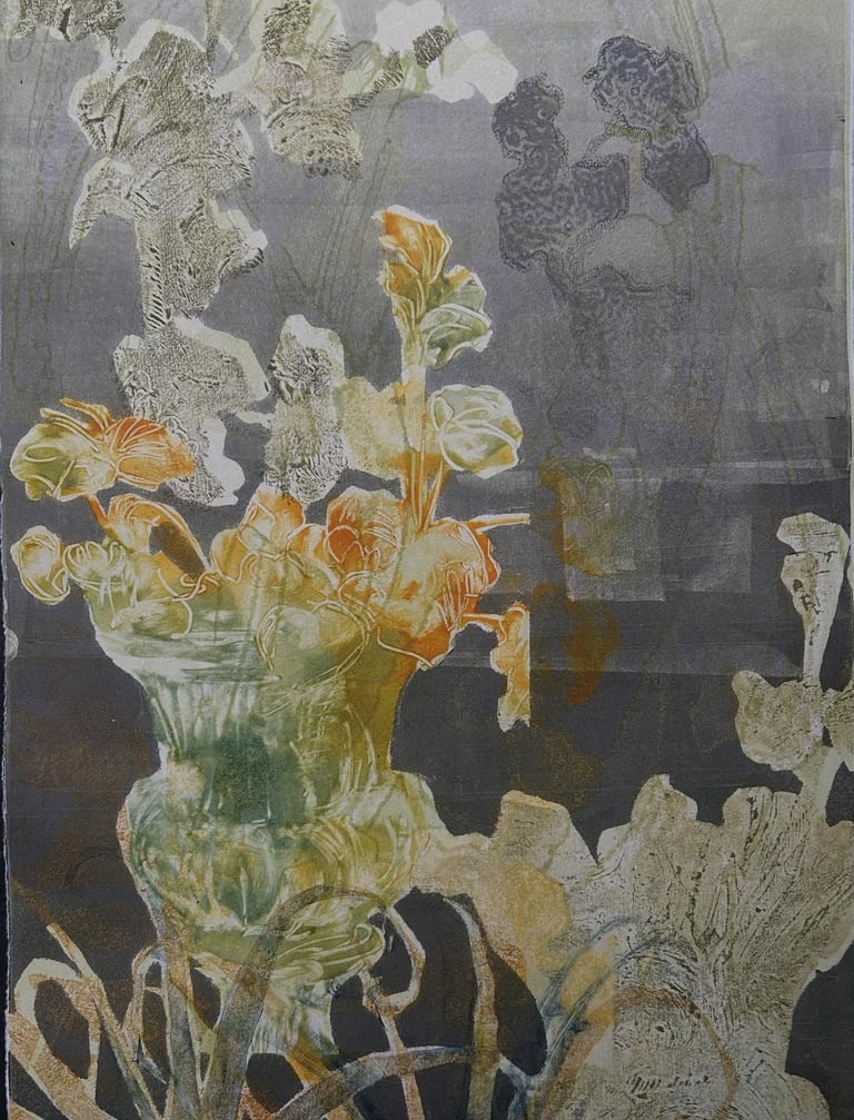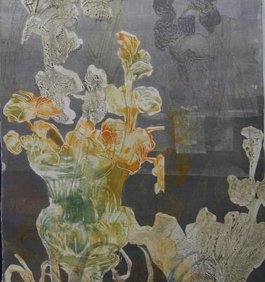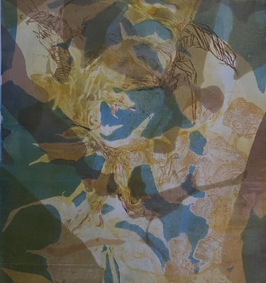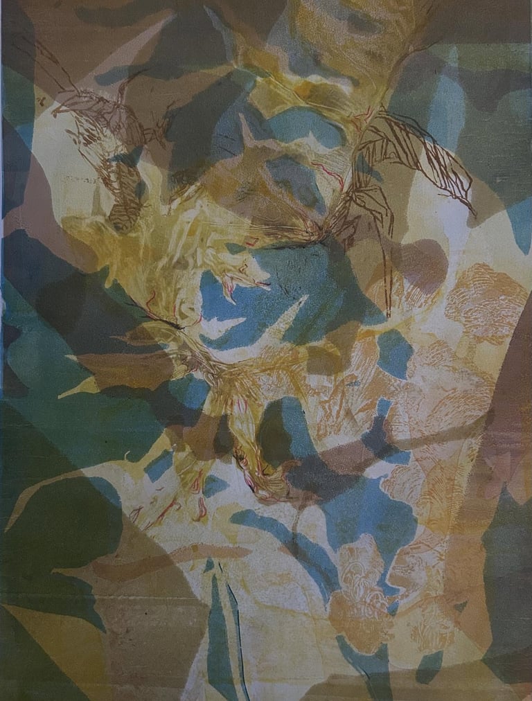 Monotypes using stencil, monoprinting, and pronto plate