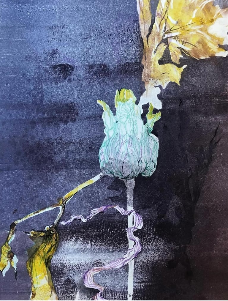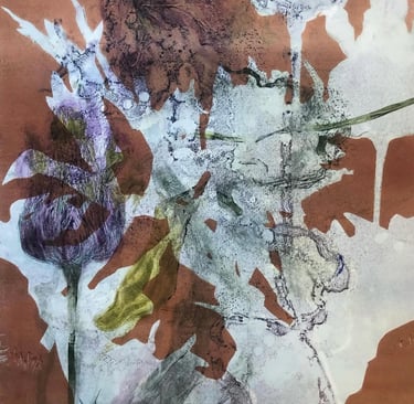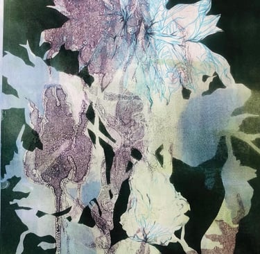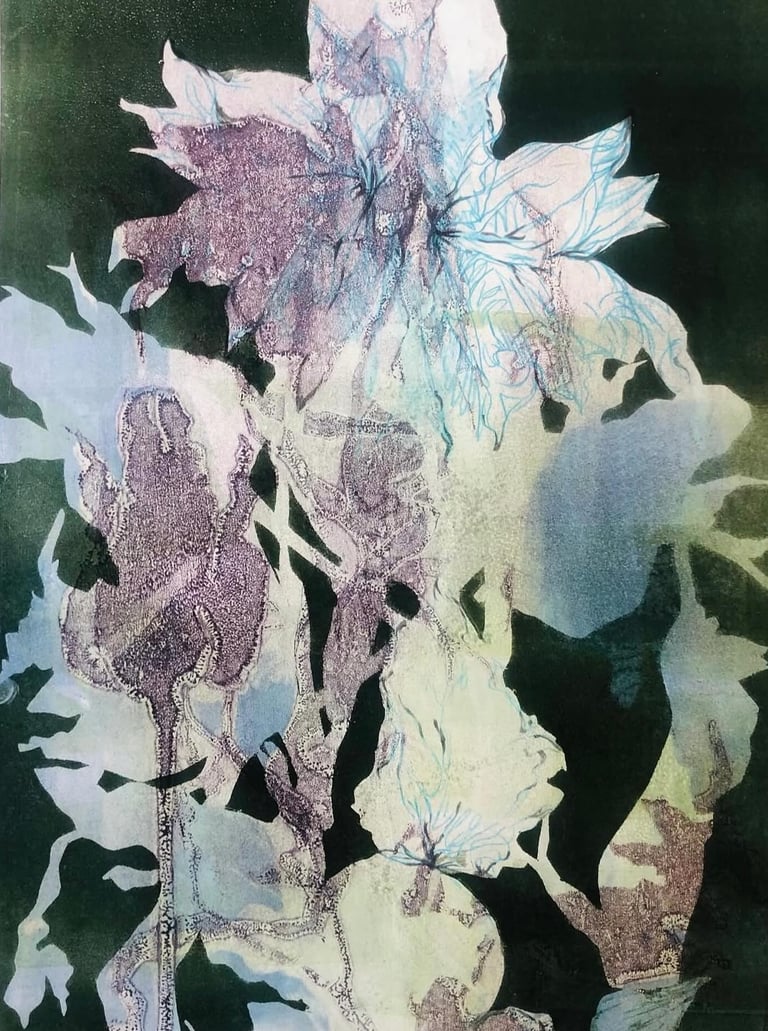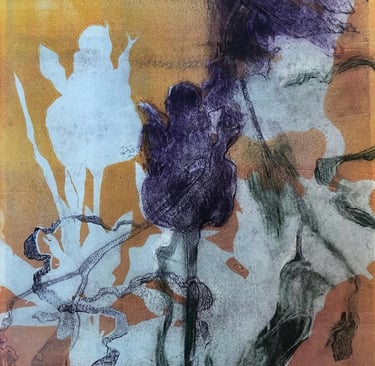 Monotype with stencils and crayon